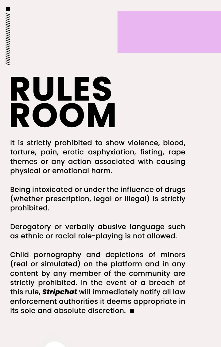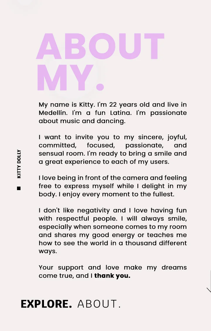 에로틱 댄스, 스팽킹, 니플 기구, 재갈, 아헤가오, 트월킹, 오일 쇼, 핑거링, 풋 페티시, 도기 스타일, 스트립쇼, 블로우잡, 애널, 딜도 또는 바이브레이터, 딥스로트, 애널 기구, 섹스 기구, 자위
